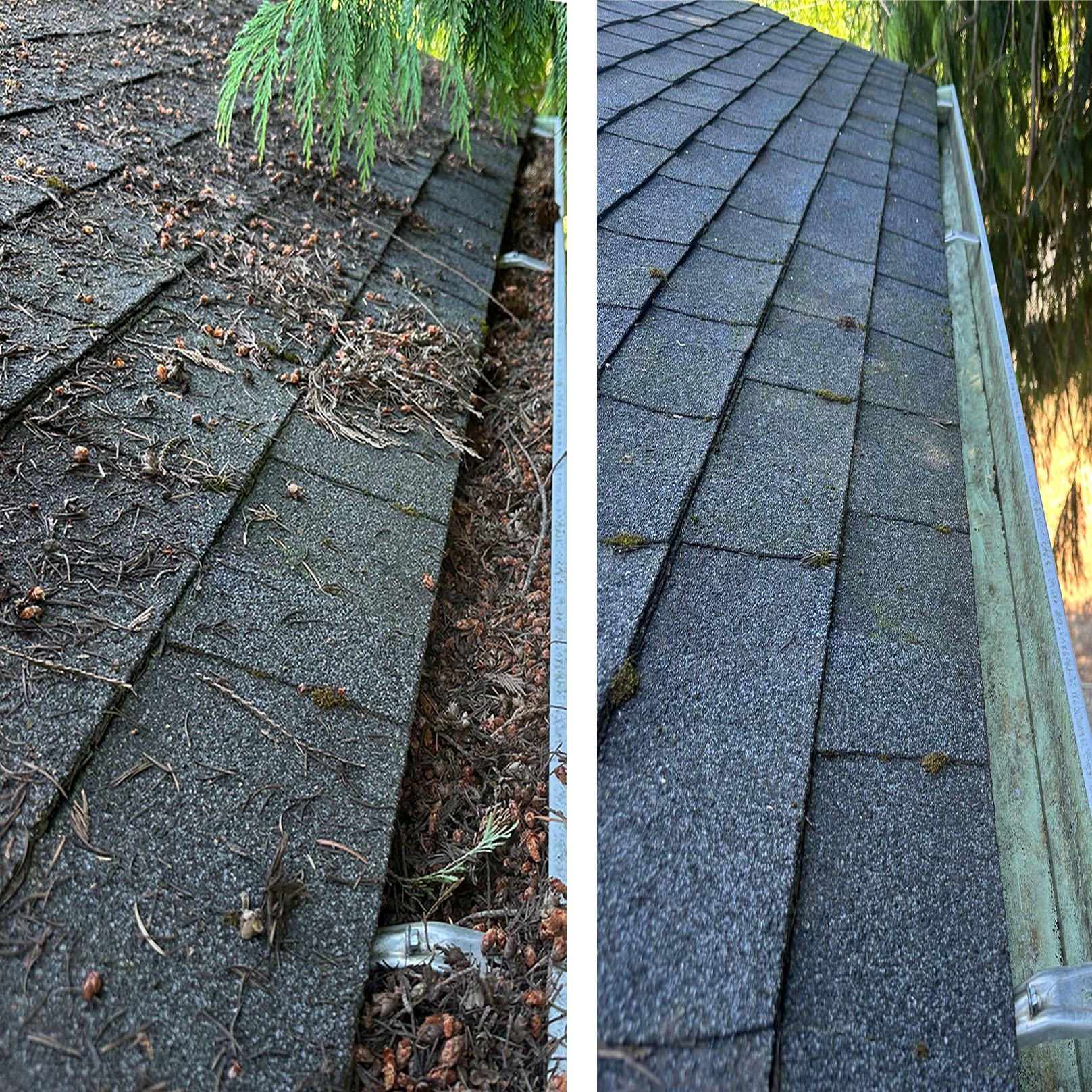 Homes in Lakewood are often surrounded by trees that drop leaves, needles, and organic debris into gutters throughout the year. When this debris traps moisture, moss and plant growth can begin forming inside the gutter system. Over time, clogged gutters can lead to water overflow and drainage problems around the home.