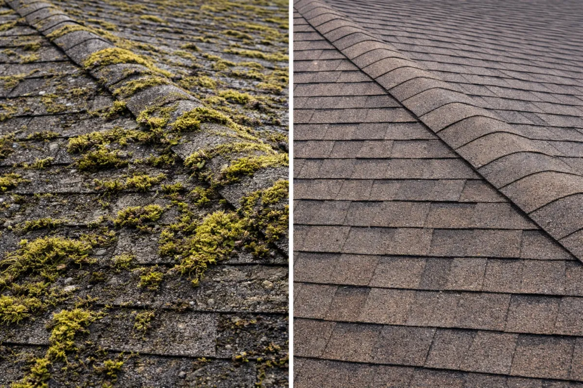 Roofs in DuPont are regularly exposed to rain, shade, and organic debris from surrounding trees. These conditions allow moss, algae, and dirt to build up on roofing surfaces over time. If this growth is left untreated, it can stain shingles, trap moisture, and reduce the lifespan of your roof.