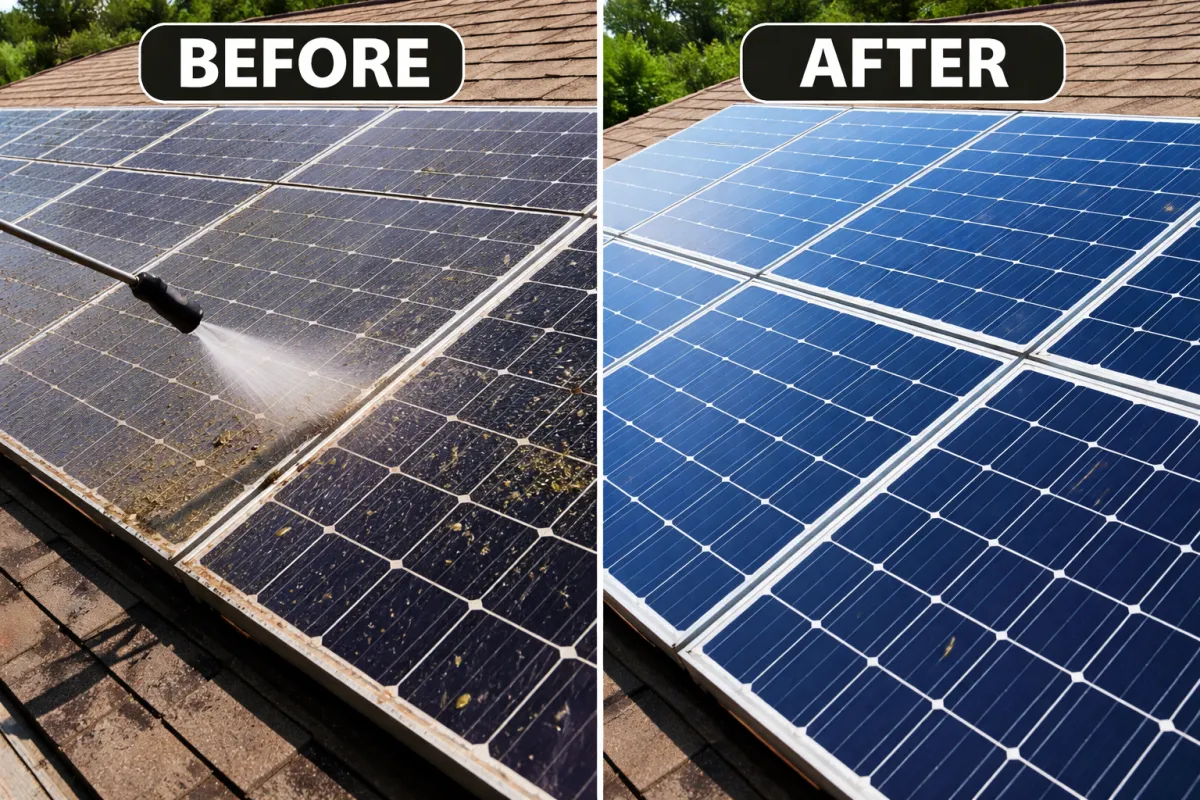 Routine cleaning helps keep solar panels clear so they can capture as much sunlight as possible and continue producing energy efficiently.